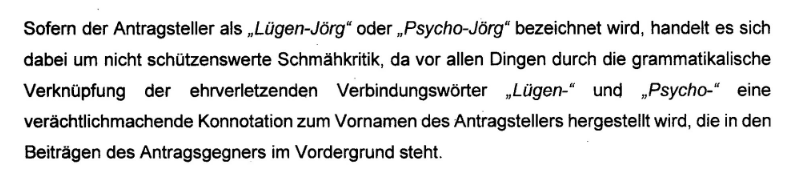 Mein Ordnungsmittelantrag folgt. Dummheit kann nämlich sehr wohl strafbar sein.