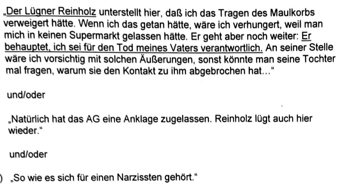 Der einschlägig vorbestrafte und ganz niedrig denkende Rufmörder Andreas Manfred Skrziepietz aus Hannover hatte mich unter anderem als Person, die Frauen schlägt, verleumdet. Wie man sieht hat ihm die Involvierung der Kanzlei des lauten und garstigen Rechts-Außen-Anwalts Markus Haintz (Köln) auch nichts gebracht, sondern nur dessen eigene, durch Spendenbettelei in die Öffentlichkeit getragene und wohl durch das ebenfalls von ihm selbst in in die Öffentlichkeit getragene, muntere Querulieren heraufbeschworene finanzielle Not (auf Kosten des Andreas Skrziepietz) etwas gelindert.
