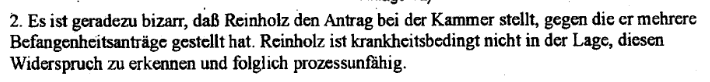 Das wirklich interessante ist seine „Verteidigung“ des Andreas Skrziepietz. Er trägt Unbelegtes vor, er ergeht sich in Anwürfen und behauptet längst widerlegtes dreist erneut. Zudem legt Andreas Skrziepietz „Beweise“ vor, welche sein Vorbringen gerade nicht beweisen. Insgesamt erweckt die „Verteidigung“ den recht heftigen Eindruck „reinsten Querulierens“ und weißt recht deutlich darauf hin, dass Andreas Skrziepietz - immerhin ist er ein ehemaliger Medizinstudent, der sich selbst „Docmacher“ nennt und anderen anbot, bei den Doktorarbeiten zu helfen - nicht oder nicht mehr in der Lage ist, seine Rechtsangelegenheiten selbst zu regeln.